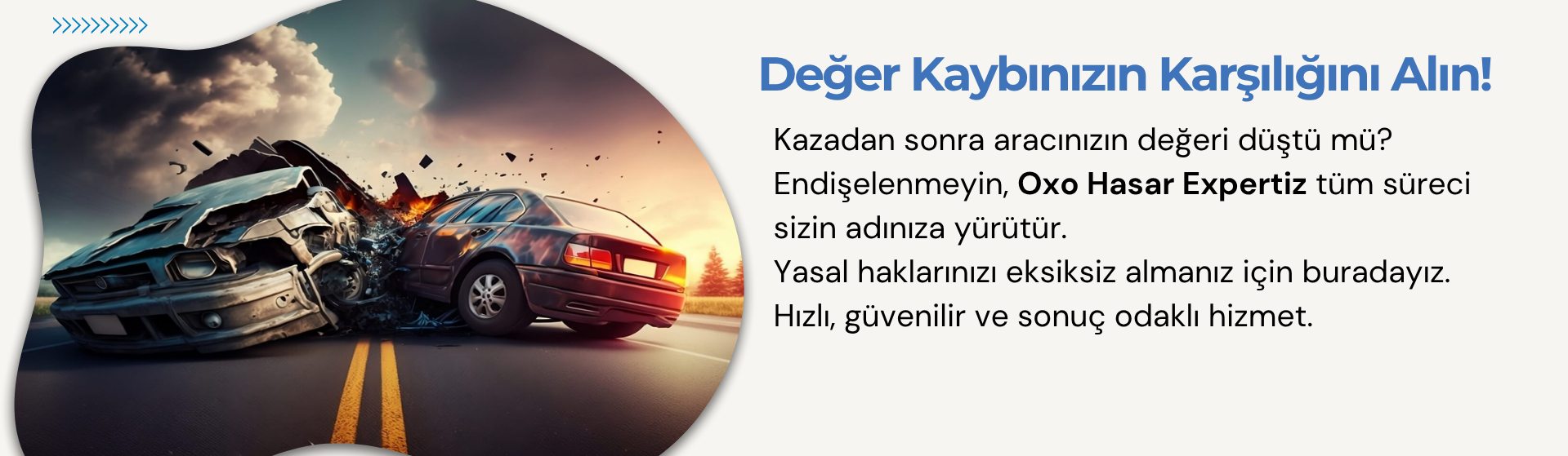 Araçlarınızda meydana gelen hasarlar yalnızca onarımla sınırlı değildir; aynı zamanda aracınızın ikinci el piyasa değerinde de önemli kayıplar oluşur. İşte tam bu noktada, Oxo Hasar Expertiz olarak devreye giriyoruz. Değer kaybı, kazaya karışan her araç sahibinin yasal hakkıdır ve biz bu hakkın en doğru, eksiksiz ve hızlı şekilde alınabilmesi için buradayız. Oxo Hasar Expertiz, hasar danışmanlığı ve araç değer kaybı alanında uzmanlaşmış bir firmadır. Deneyimli kadromuz, sigorta ve hasar süreçlerine hâkim uzmanlarımız ve alanında yetkin çözüm ortaklarımızla, her müşterimize özel bir hizmet anlayışı sunuyoruz. Amacımız; kaza sonrasında oluşan maddi kayıplarınızı minimuma indirerek, yasal haklarınızı sonuna kadar almanızı sağlamaktır. Müşteri memnuniyetini merkezine alan hizmet anlayışımızla, sürecin başından sonuna kadar yanınızda oluyor, tüm evrak ve başvuru işlemlerini sizin adınıza yürütüyoruz. Değer kaybı tazminat taleplerinde hızlı, şeffaf ve etkili çözümler sunarak, aracınızın gerçek zararını telafi etmenizi sağlıyoruz.